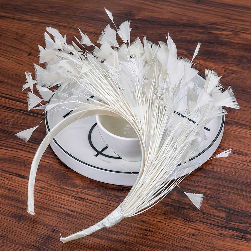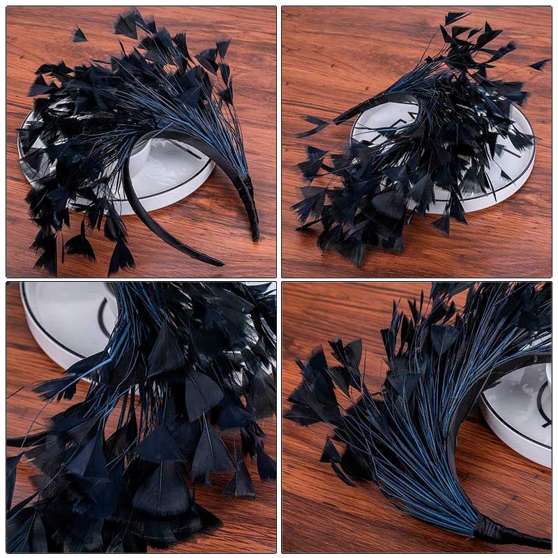 Diadema con plumas pequeñas desde el lateral hasta el centro.